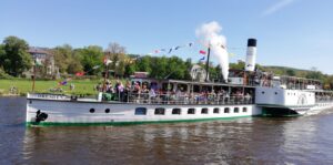und dem „Blauen Wunder“ bis Pillnitz, wo die Schiffe wenden. Begleitet von zahlreichen Schaulustigen