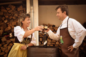 einer Brennerei mit Hofladen mit umfangreicher Verkostung von Likören, Kirschbrand und Säften,